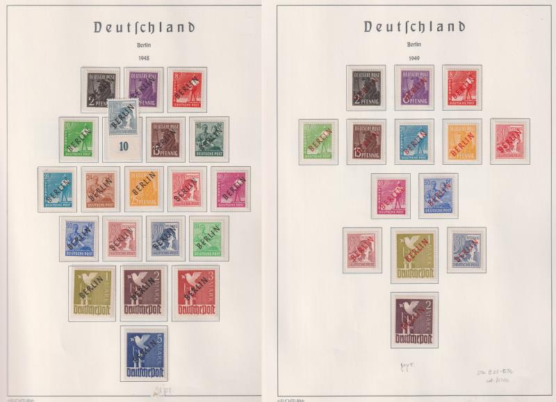 92 M* imageGermany-West Berlin 1948-90 attractive mint/MUH colln of 869v & 7m/s in Lindner hingeless album, with black BERLIN ovpts complete set MUH, 1949 UPU set mint, & appears mostly complete & MUH from mid-1950s. Cat £6500+. (Image)