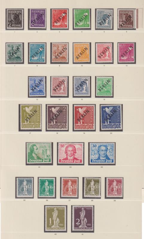 88 * imageGermany-West Berlin 1948-90 apparently complete MUH colln in fine hingeless L/H springback album. Incl all scarce 1948-53 issues, virtually all in superb condition (a couple of items noted with minor gum bends). The 1949 defin red ovpt set (SG B21-34, c (Image)