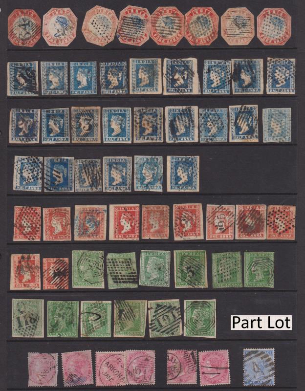 99 / imageIndia 1854-1970 seln of 1800+ mint & used on 32 Hagner pages. Noted 1854 ½a blue x 24, 1a red x 11 & 2a green x 12 GU/FU; 1895 5r QV MUH; 1913 25r GV GU/FU; 1928 15r GV mint & 25r GU x 2; 1929 Airmail set mint; 1937 GVI Pict set GU/FU; 1949 Pict set FU; (Image)