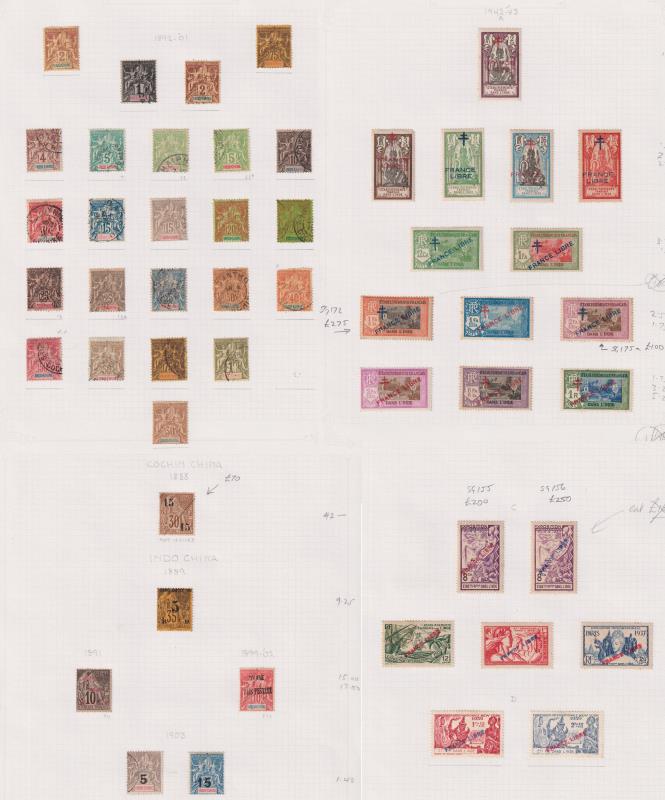 103 / imageIndo-Chinese Post Offices in China c1900-42 mint & used seln of 117v on 8 stockcards. Also, mint & used collns of Indo-China 1888-1949; & French Indian Settlements 1892-1948 on pages. Minor dupn & some variable condition. Cat £545+, £1550+ & £1380+ res (Image)
