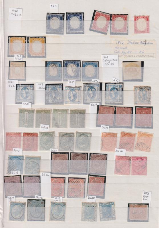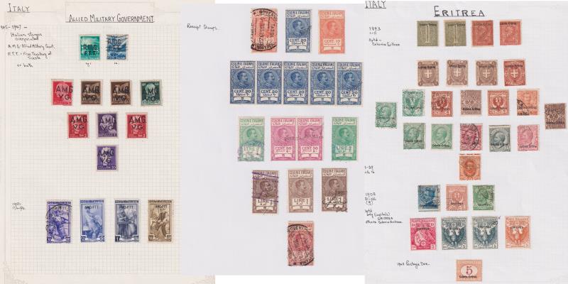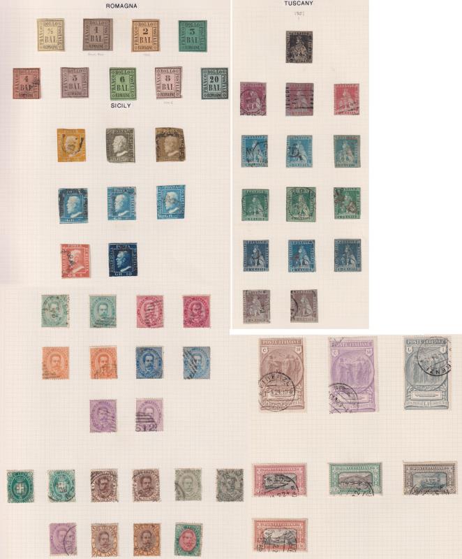 109 / imageItaly & Italian States 1852-c1945 mostly used colln in FG album, useful range of Italian States (135v), good seln of Italy (231v) incl 1889 5L used (SG 43, cat £1100); 1920s-30s commems (incl Black Shirt Fund set FU) & 1914-23 Parcel Post to 20L. Some dup (Image)