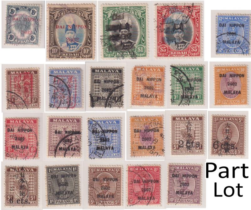 114 / imageJapanese Occupation of British Commonwealth 1942-4 mint & used colln on 16 hingeless album pages. Noted 1942 Malayan Postal Union Postage Dues with upright seal ovpt (4v incl 3c mint) & with DAI NIPPON 2602 MALAYA ovpts (set of 6) mint, 1944 North Borneo (Image)