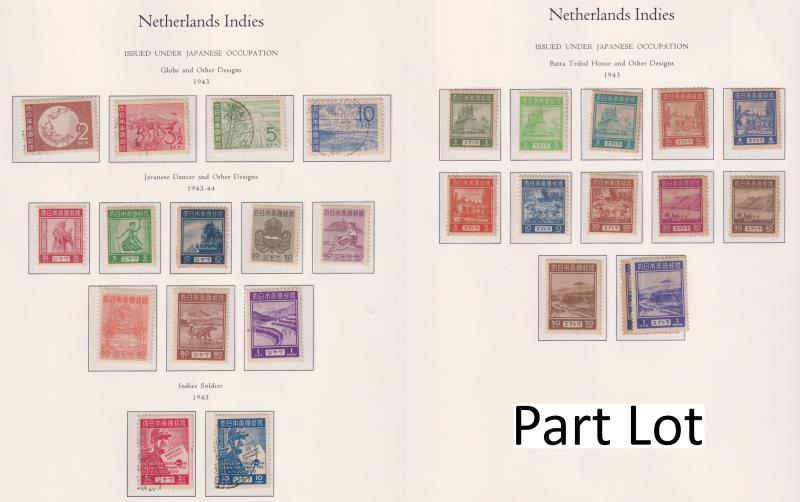 115 / imageJapanese Occupation of Netherlands Indies/Indonesia & Philippines 1943-48 mint & used colln on 15 hingeless album pages. Noted Java 1943-5 set of 8 & Sumatra 1943-4 set of 12 mint; Philippines 1942 16c + 2c Red Cross Fund FU & 1943-4 Pictorials set of 14 (Image)