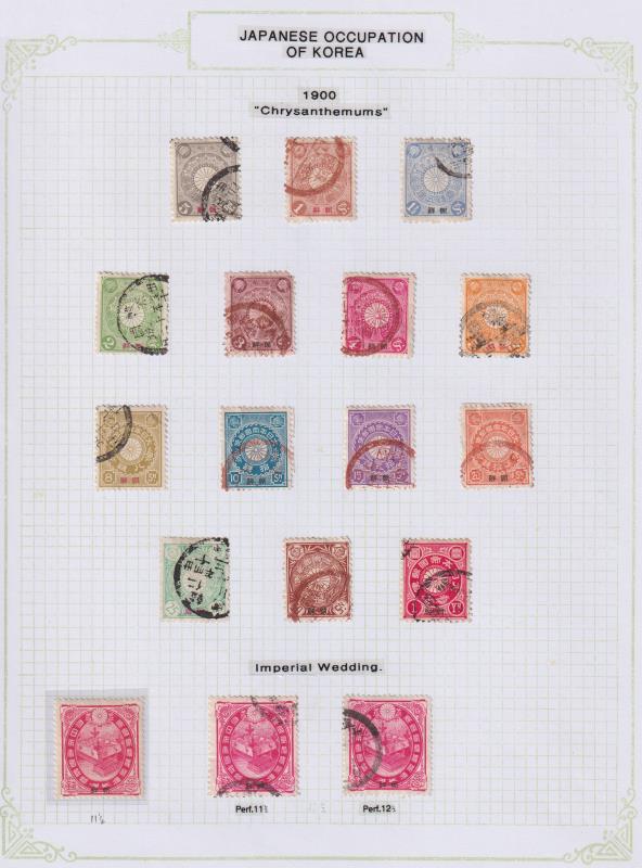 116 / imageJapanese Post Offices in China & Korea 1900 mostly used colln of 33v & 17v respectively, on 5 pages. Cat £290 & £870+ respectively. (Image)