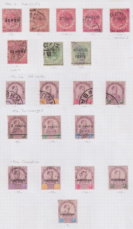 123 / imageMalaya-Johore 1884-1996 mostly used colln, annotated as per SG. Cat £1450+. (Image)
