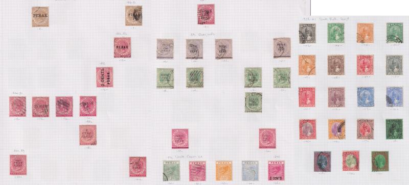 127 / imageMalaya-Perak 1880-1996 mainly used colln, annotated as per SG, with a good range of ovpts. Cat £3750+. (Image)