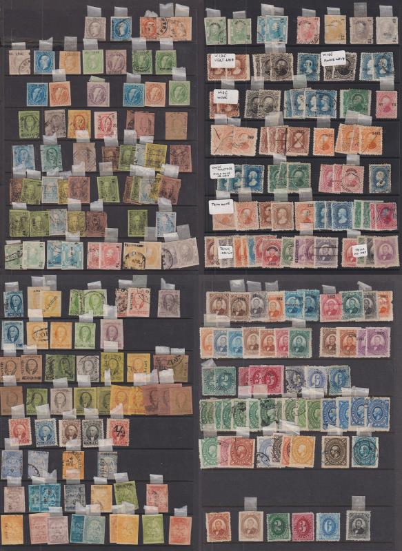 134 / imageMexico 1856-84 mint & mainly used colln of Hidalgo, Juarez & numerals, 258v on 4 Hagners. Noted: various district & year ovpts, reprints & forgeries, some dupn, variable condition. Scott cat US$5900+. (Image)