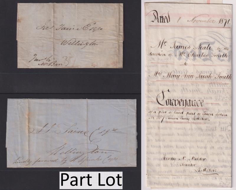 NZ 1850s-1880s accum: 1853 & 1857 entires addressed to Wellington, no postal markings; + 11 c1860s-70s Canterbury Land