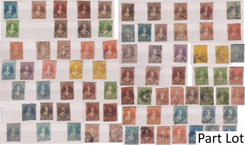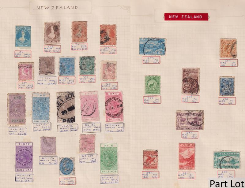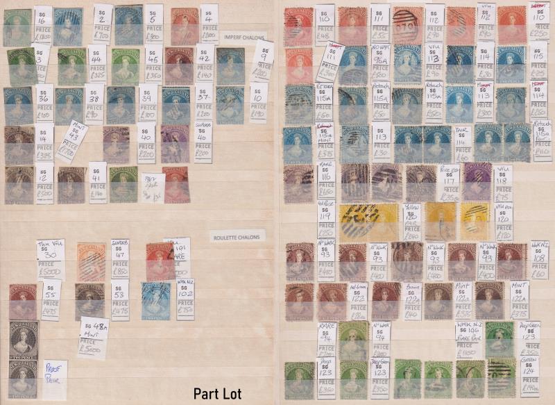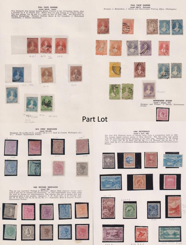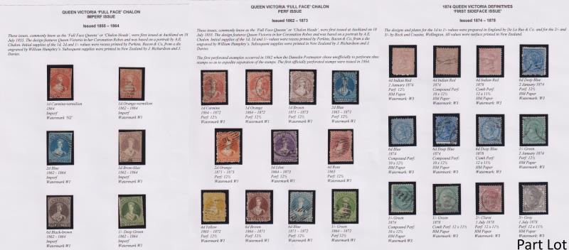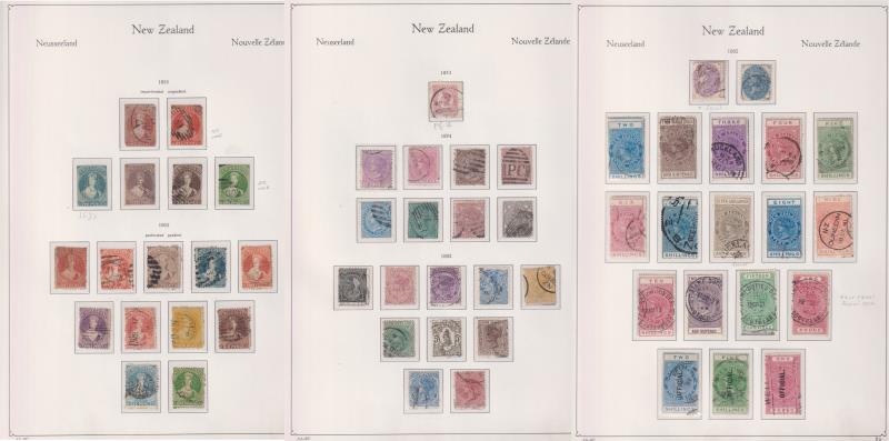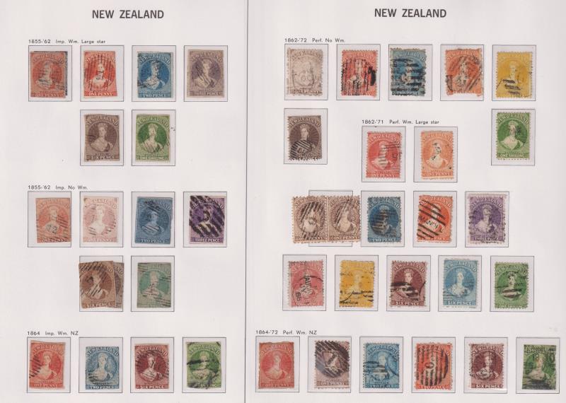 NZ 1855-1967 pre-decimal mostly used colln on "Premier" album pages, nearly complete. Noted: FFQs imperf set of 6 (2d good 4