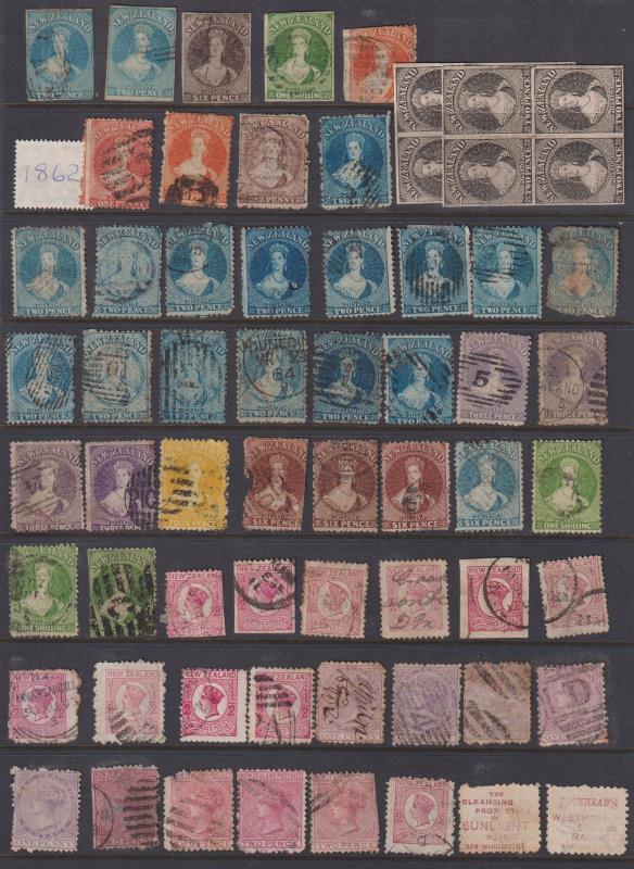 NZ 1860s-1960 defins extensive mint & used colln of many 100s in mounts on many pages in loose-leaf album, beginning with nice