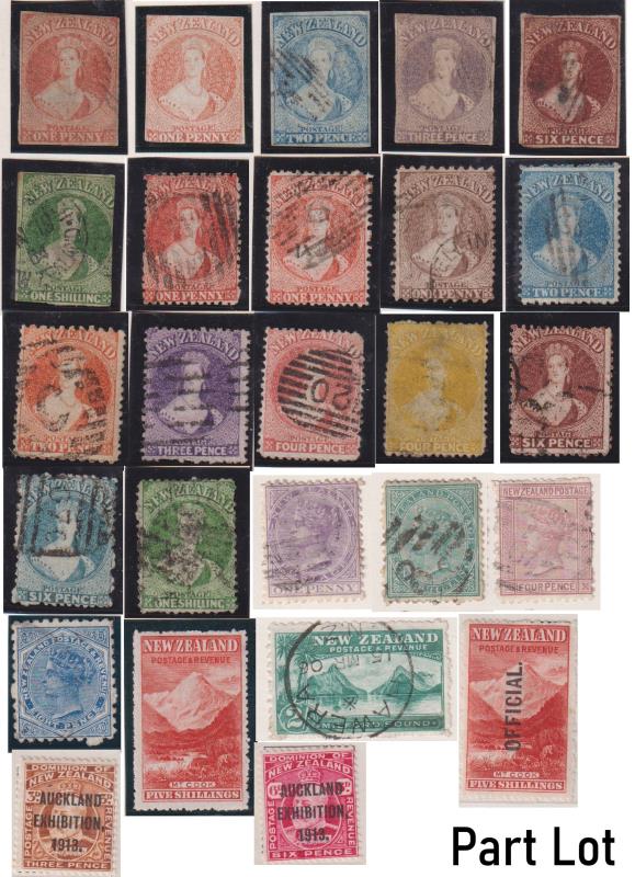 (noted about 16 adverts); 1898 Picts x about 250 to 5/- (5/- x 2 fiscals); ½d Mt Cook x about 250; 1907 Picts incl officials x a