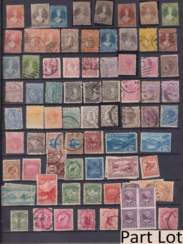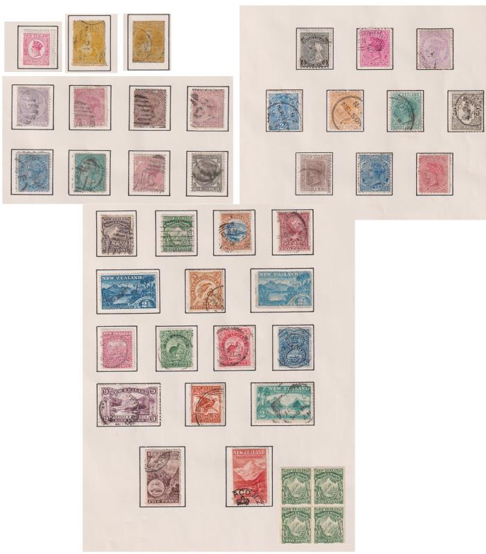 NZ 1860s-1977 comprehensive simplified used (mostly FU) colln on hingeless pages in Kabe 16 ring loose-leaf album. Noted FFQ