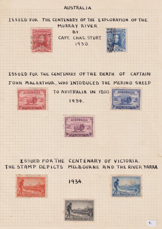 201 / imageNew Zealand, Australia & misc c1930-60s in SG album. Noted Australia ANew Zealandac & Robes used sets; New Zealand GV mint set, Dunedin Exbn set mint, Admirals & 2/- Official mint. Healths from 1929 mint & used (1932 with 1st day cancel) & misc Fiji etc. (Image)