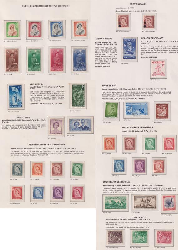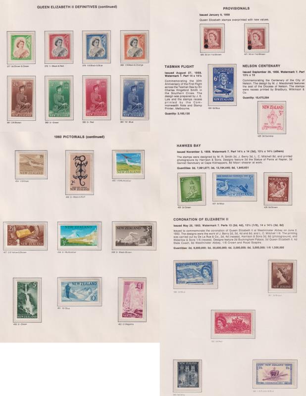 208 M* imageNew Zealand 1953-85 colln in Seven Seas hingeless album, appears complete incl Health m/ss. Mostly MUH but some early issues eg: QEII 2/6d - 10/- mint, 2d QEII Stars error MUH. (Image)