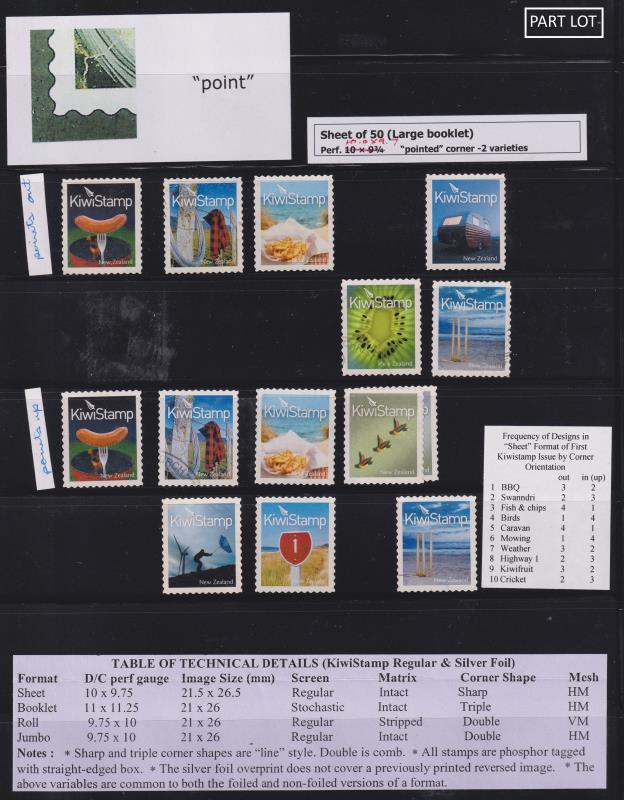 210 / imageNew Zealand c1960s-90s extensive colln/accum defin & commem varieties, mostly minor but some major. Nearly all ex CP, many with detailed explanations. Some identified by CP No's, others "V" No's. Several hundred items. (Image)