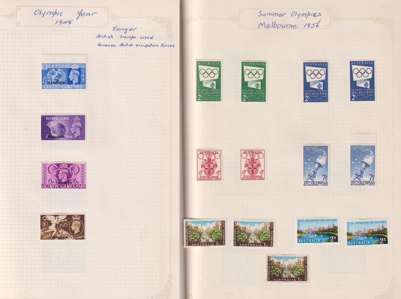 215 C/ imageOlympics c1948-96 colln on pages - about 1000 stamps, mostly as sets & virtually all cover the 1960 & 1964 Games. Many useful sets noted. Mix mint/MUH & used, & a few covers. (Image)