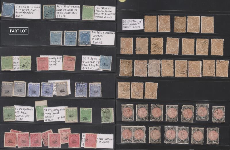 217 / imagePacific Isl c1870s-1980s seln incl: Fiji c1870s-1920s useful range of 213v mint & used, with shades & perf varieties, some dupn, eg: SG 29 mint & some priced for sale. Noted 5/- EVII & 1/- GV SPECIMEN ovpts. Also Cook Isl (131v) mint/MUH to 1950s with 2 pairs plate proofs 1d Cook etc; Pitcairn x 53 mint/MUH; Tokelau x 200 assorted mint/MUH & small used seln of India/States (126v). Some mixed cond. High cv. (Image)