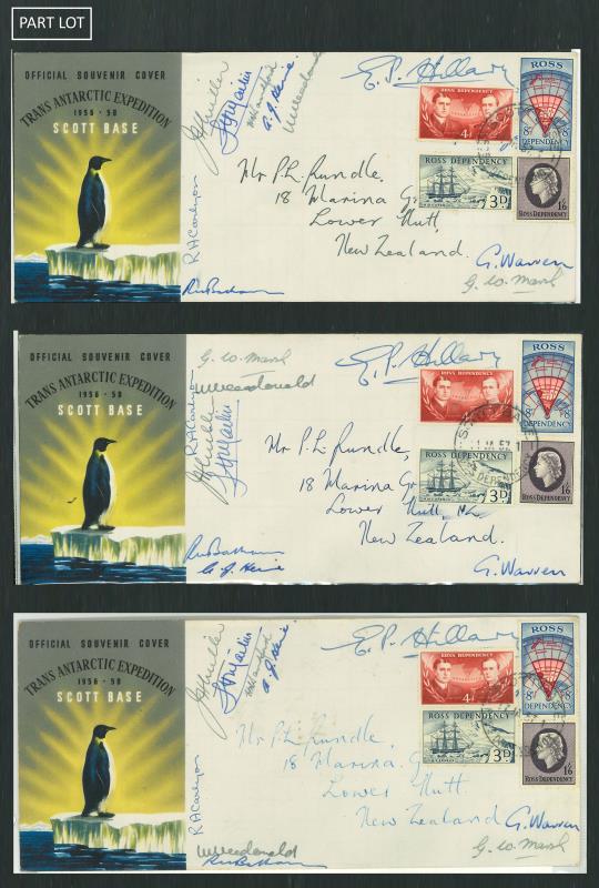 223 / imagePolar c1955-2020 (mainly Antarctic) large colln in 5 albums, incl an AAT colln which appears complete; King Edward VII Land 1d x 2 used; Victoria Land horiz pair mint/MUH with broken stop on 2nd stamp; Ross Dep x 3 Ed Hillary signed Trans-Antarctic Expdn covers; misc mint/MUH/CTO stamps & souvenir covers etc. (Image)