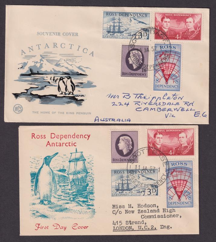 228 C imageRoss Dependency 1957-2013 colln of 50 diff pictorial/printed FDCs in album. Noted 1967 1st decimal set on 4 diff designs of FDCs. CTO unaddressed FDCs from 1982-2013 & 6 additional FDCs for m/s. Total 31 diff issues. Cat simpl $1150. Ex Horrell. (Image)