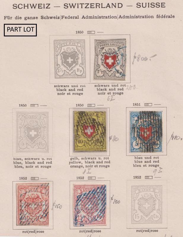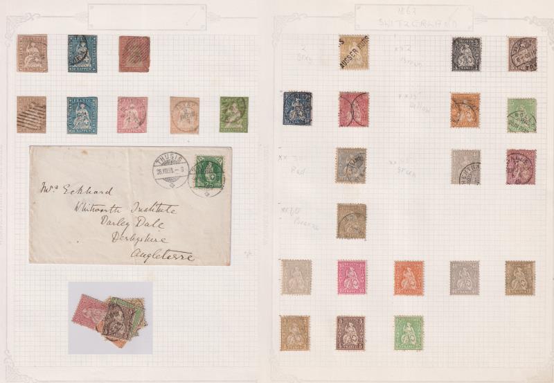 236 C/ imageSwitzerland 1850-c1881 specialised used colln on well written up pages. Starts from the Federal issues - 19 stamps & 3 covers some with certs; 2 imperf Helvetia covers; Seated Helvetia's 75 stamps to 1f incl several mint & 18 covers, plus 4 c1890s covers. Huge cv. Ex Dykmans. (Image)