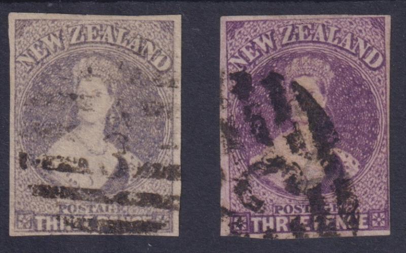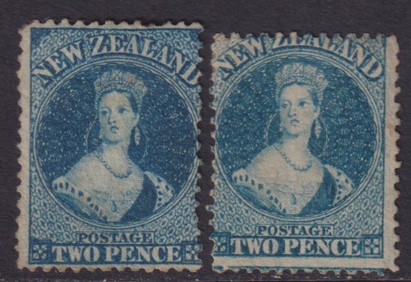 2d deep blue, plate II p12½, 2d blue p12½, o/c. SG 114, 115. Cat £500. Both unused. (Image)