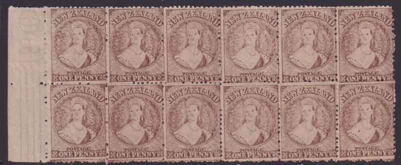 1d brown horiz block of 12 (worn plate, 6 x 2), with left selvedge, star wmk. Ceremuga cert (2023). SG 132a. Cat £3600. 6