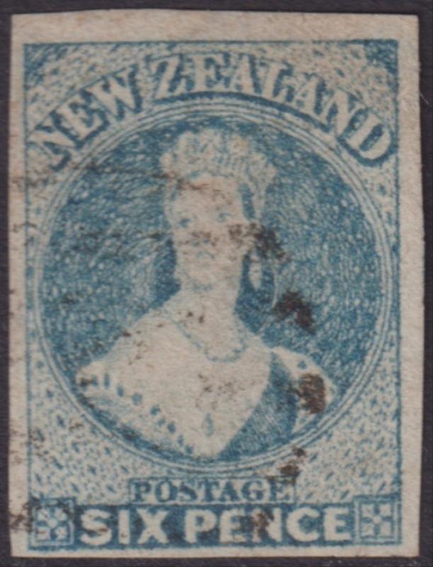 6d pale blue, accidental imperf, 4 good margins, star wmk. CP A5kw. Cat $3000. FU. (Image)