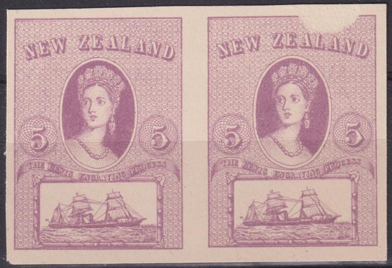 c1892 Lewis Essay imperf violet horiz pair, right hand stamp surface scuff. CP cat $5000. (Image)
