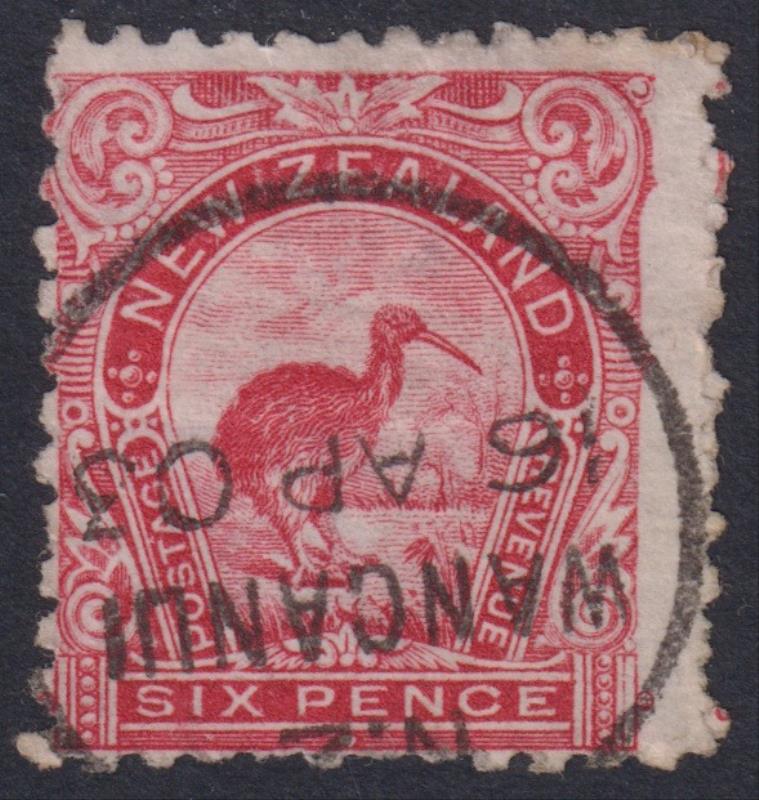 1903 6d Kiwi red, p11, rare upright wmk, clear Wanganui 16 AP 03 cds (3rd earliest known use, ref Thackery), one short perf &