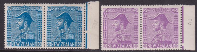 487 M* image1927 2/-, 3/- Admirals horiz pairs, R/H selvedges, Cowan paper (1 x 2/- crease, gum fault). Jury cat $1650. MUH. (Image)