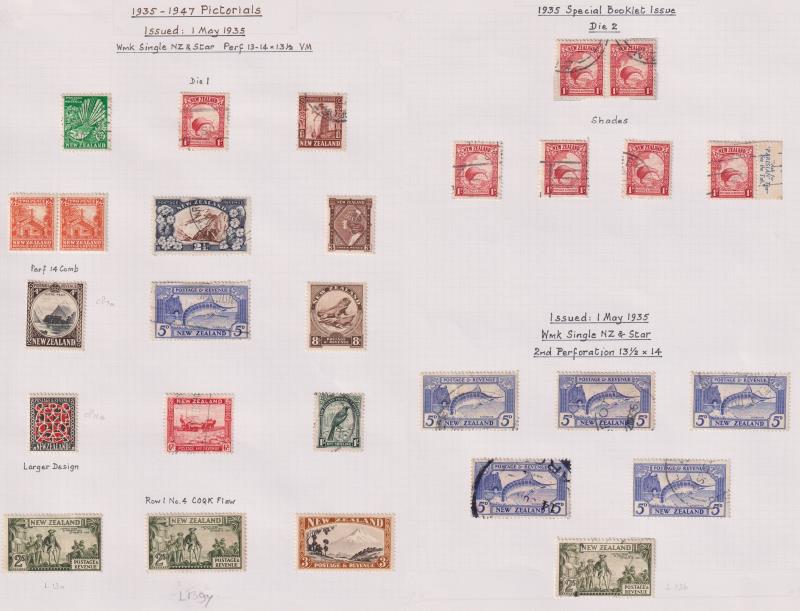 489 / image1935-42 specialised colln on annotated pages - mix mint & used. All issues, papers, wmks, good range of shades, plate blocks etc, incl officials. About 350 stamps. Good cv. (Image)