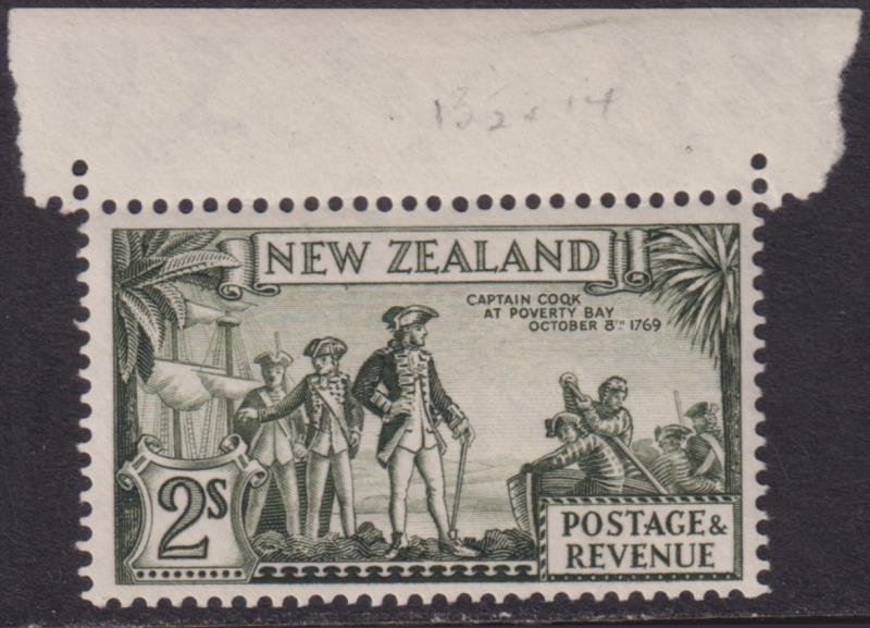 492 * image1939 2/- Cook, "COQK" flaw R1/4, with top selvedge, p13½ x 14, mult wmk. CP L13d(Y). Cat $975. MUH. (Image)