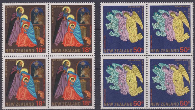 543 * image1985 18c & 50c Christmas blocks of 4 of each stamp, all with unapproved "CRISTMAS" error. ACS cat $1200. MUH. (Image)