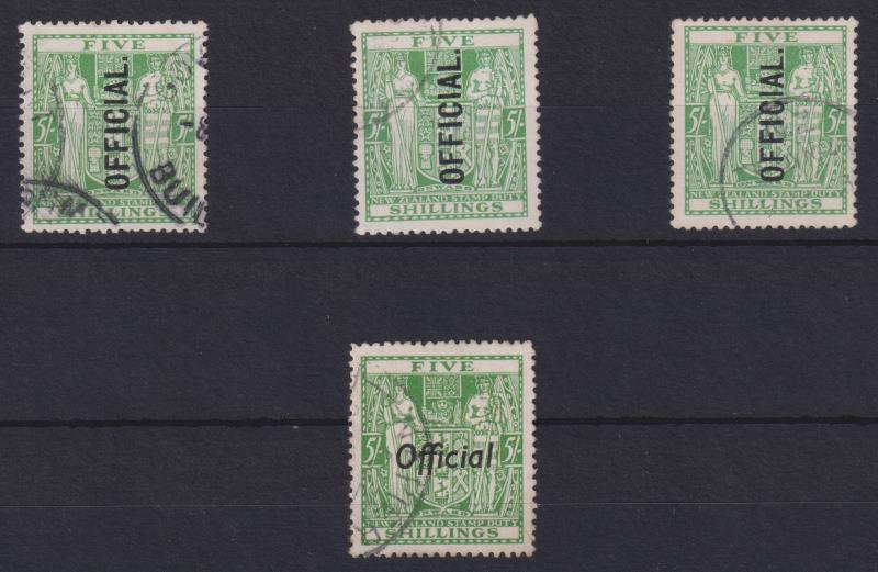 601 U image1933 5/- Arms, vert ovpt x 3, all ex Wellington. 2 FU, 1 GU/FU. (Image)