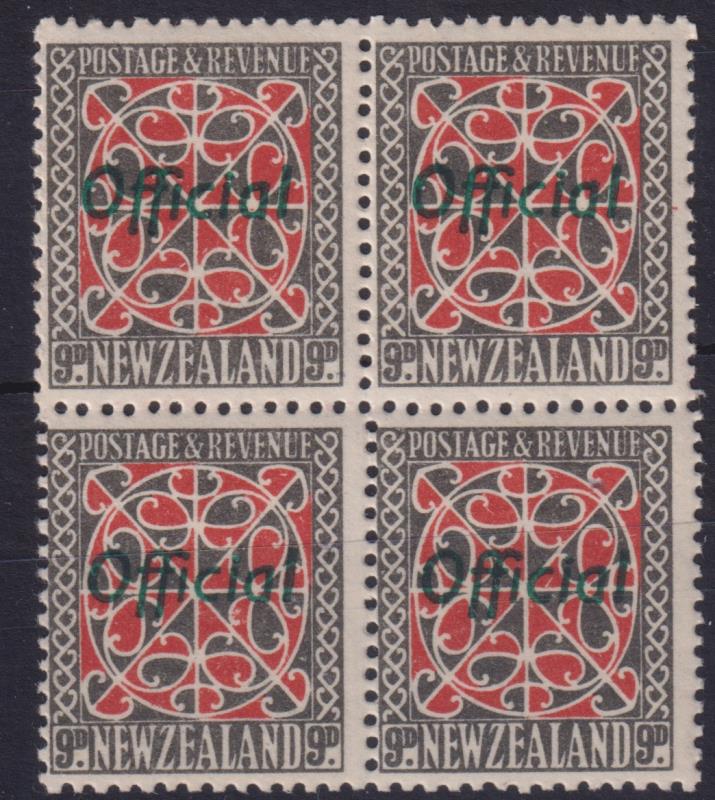604 * image1935 9d Panel block of 4, green ovpt. Jury cat $1800. MUH. (Image)
