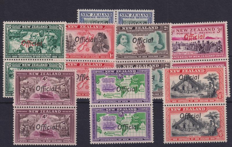609 * image1940 Centennial set of 8 vertical pairs (2½d horizontal), showing joined "FF" variety. SG O141a-9a. Cat £545. MUH. (Image)