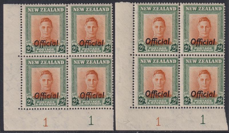 610 * image1947 2/- GVI brown-orange & deep green, plate 1-1 upright & sideways wmk, the two different plate blocks. CP cat $1180. MUH. (Image)