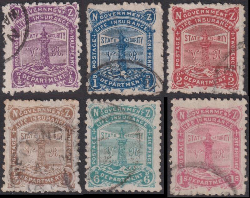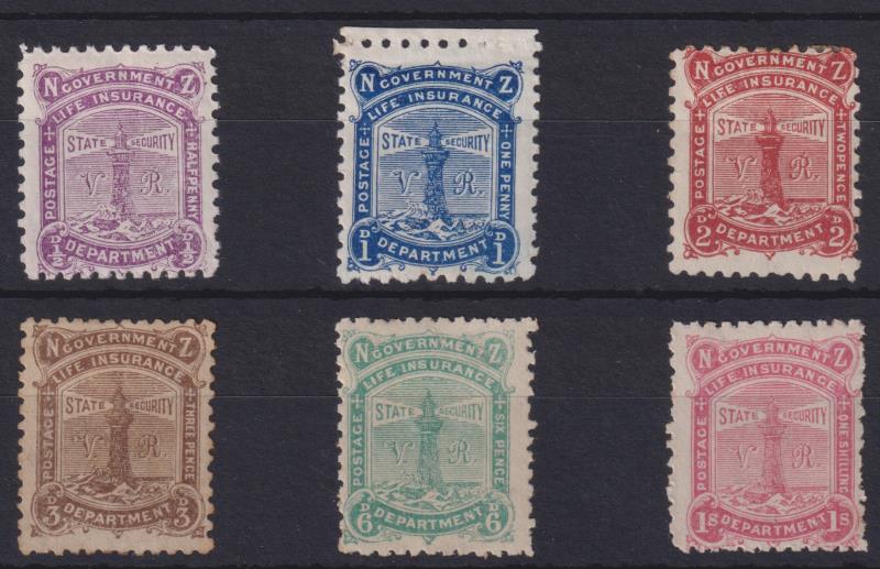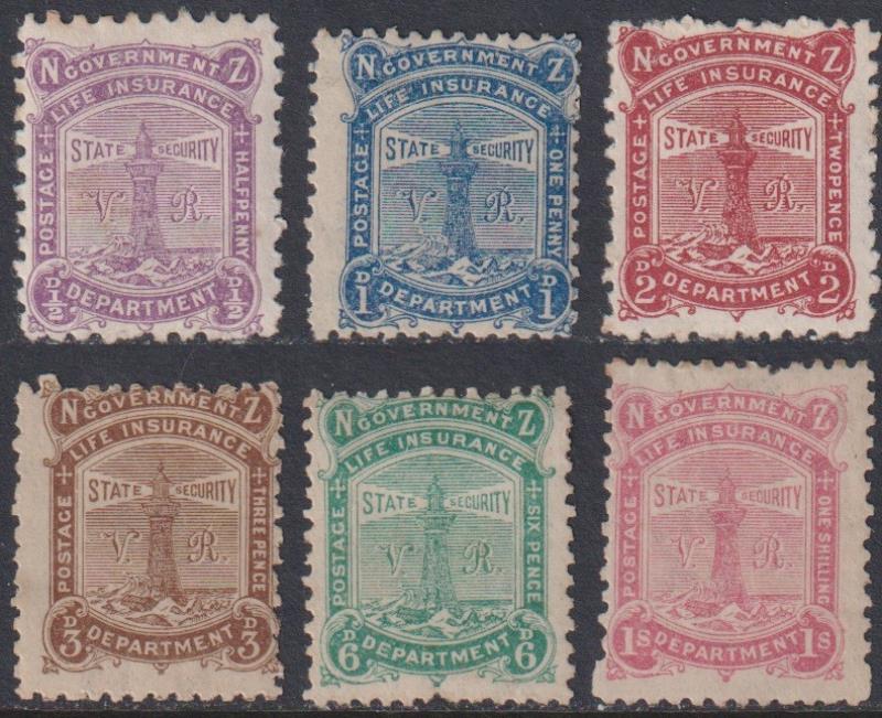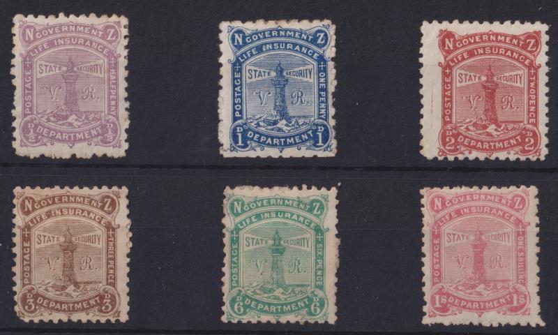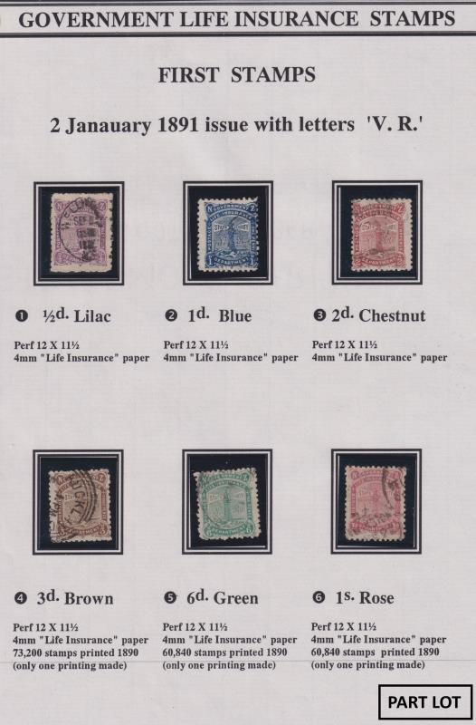 619 M image1891 VR set of 6. 6d & 1/- each pulled perf, ½d & 6d minor gum tone, 3d o/c. Cat $4400. Mint. (Image)