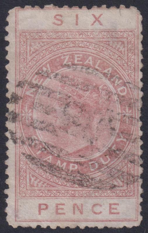632 U image1882 6d lake-brown, p11¾, NZ & star wmk. Postally used c1882 during emergency period. Pmk barred obliterator "3" of Cambridge. Minor crease visible on back only. SG F6, cat £400. CP Z1e. Cat $750. GU. (Image)