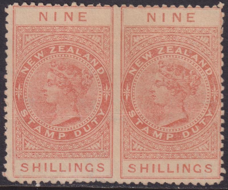 634 M image1882 9/- horiz pair, imperf between, creased. SG F65. Cat £3500. Unused. (Image)
