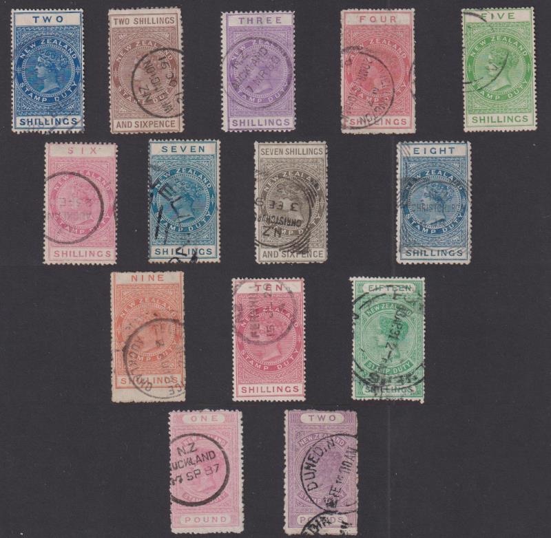 635 U image1882-1927 all values from 2/- to £1 (excl 12/6d) & £2 (forged pmk), (2/- & 7/- with parcel cancels). Jury cat $2695+ (excl £2). (Total 14 stamps). (Image)