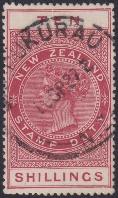 638 U image1927 10/- maroon, Cowan reverse wmk paper, p14½ x 14, part Waipukurau SEP 1927 cds. CP Z12n. Cat $700. FU. (Image)