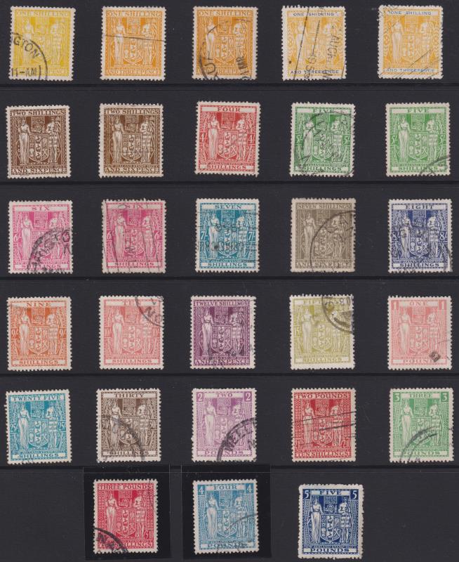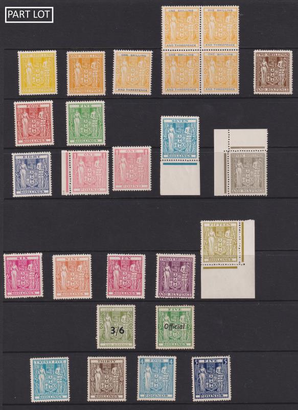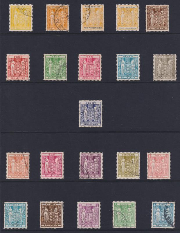 1931-56 2/6d-£5 seln incl £2/10/- x 2 & 22/- on 22/-; on Hagner (96v). Generally FU. Incl several fiscals. Good CV. (Image)