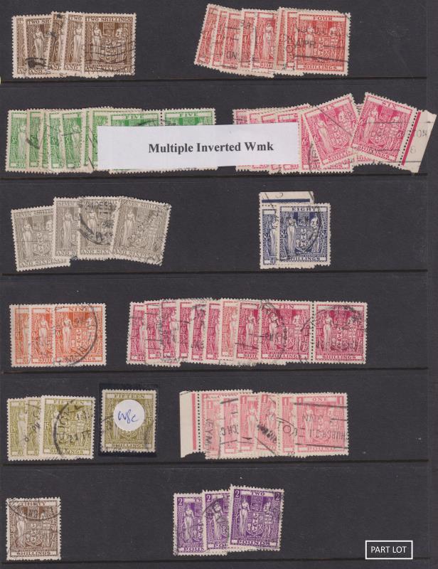 1931-56 1/3d-£5, no 35/- or £4/10/-. 28v on Hagner. 25/- CTO, £3.10 (CTO?) & £5 very light indistinct cancel. Mostly FU. (Image)