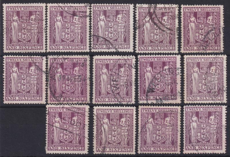 1931-56 seln of 21 with apparent postal cancels. Incl 7/6d, 12/6d, 25/-, 30/-, £2, £3 & £4. Jury cat $3575+. GU/FU. (Image)
