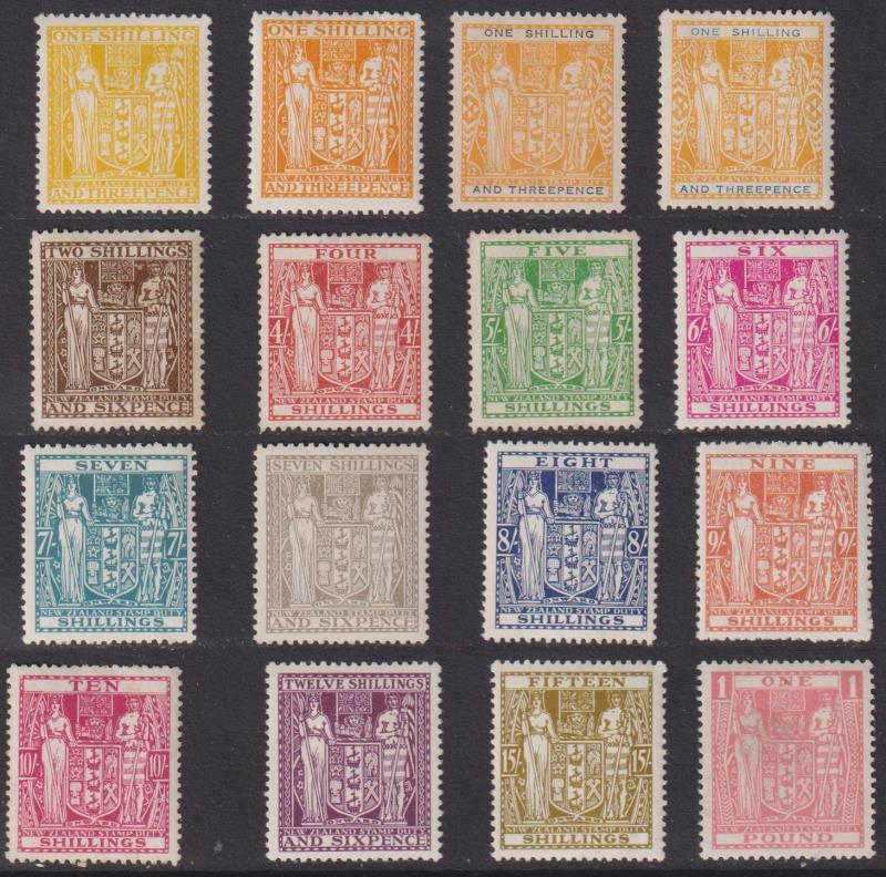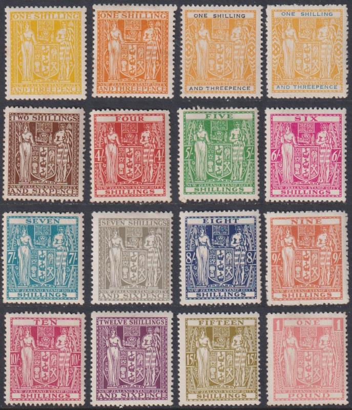 1931-56 short set of 16 to £1. Jury cat $1600. Mint except 1/3d orange, 1/3d yellow/black, 2/6d to 5/- MUH. (Image)