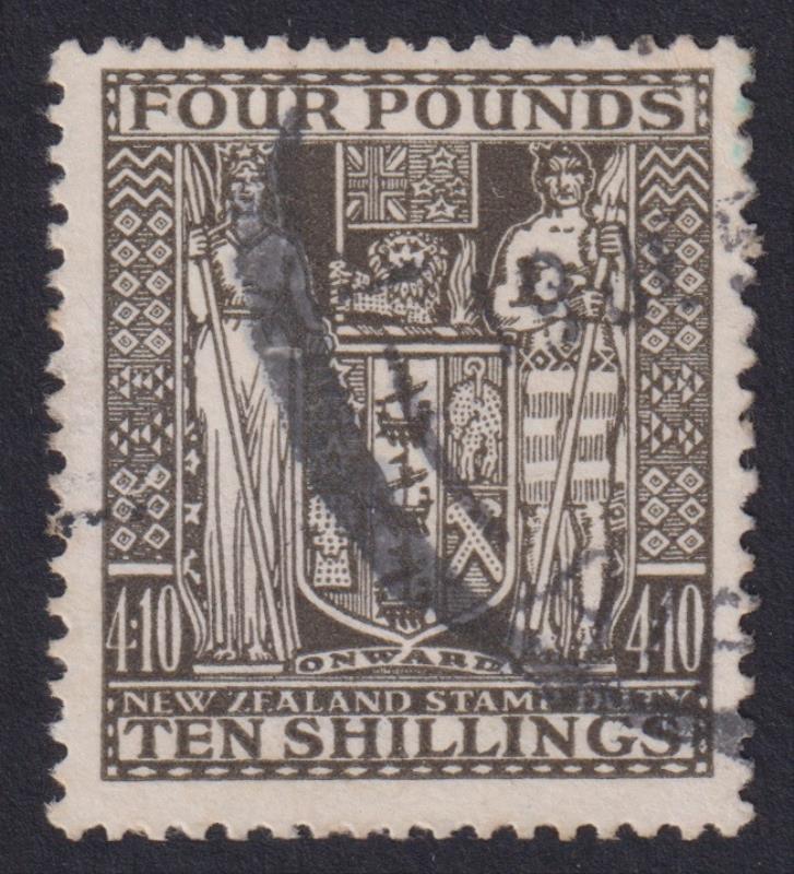 1931-56 £4/10/-, part heavy Wellington Airmail cancel. Jury cat $5000. GU. (Image)