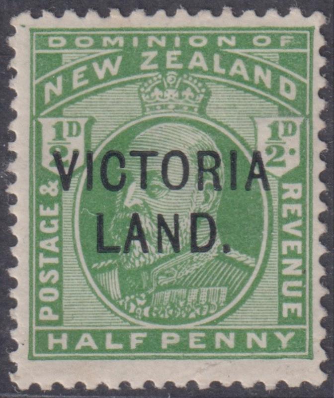 725 M imageVictoria Land 1913 ½d, very minor gum tone spot & very light corner crease. Jury cat $1750. RPSNZ cert (2025). Mint. (Image)