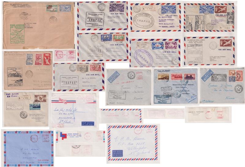 726 C imageNew Caledonia 1940s x 13 covers - various Pan Am, "Trapas" etc flights, mostly sent overseas. Interesting seln. Also 3 x 1970's covers. (Image)