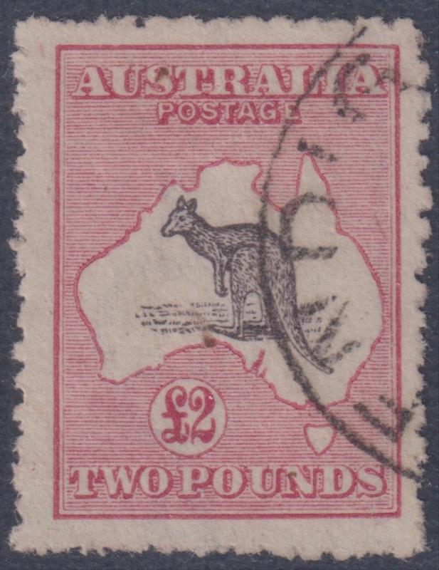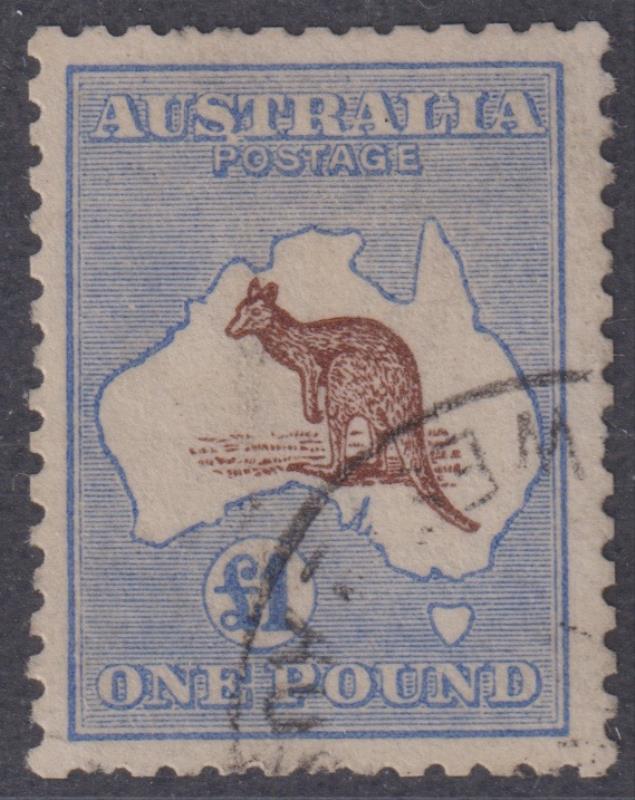 738 U image1915 £1 Roo chocolate & dull blue. SG 44. Cat £1600. FU. (Image)